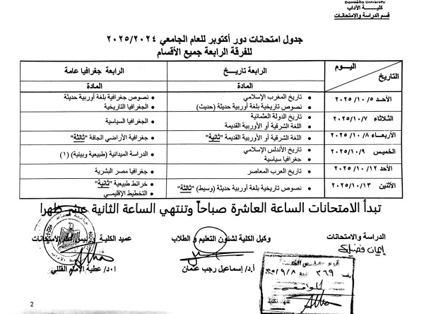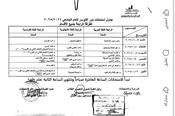 جدول امتحانات دور أكتوبر للعام الجامعي 2026/2025